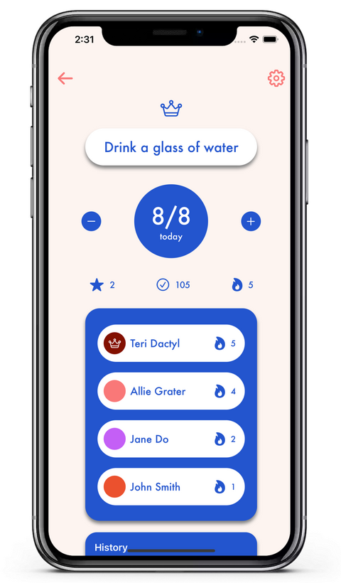 In the app, users can engage in healthy competition with room members while pursuing personal wellness goals.
